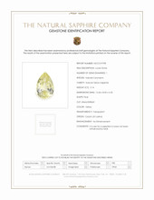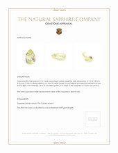 Introducing an exquisite masterpiece from The Natural Sapphire Company: an extraordinary ring that captures the essence of elegance and sophistication. At its heart lies a stunning 5.14 carat pear-shaped yellow sapphire, a beacon of pure, captivating brilliance. This sapphire, sourced from the storied lands of Ceylon, whispers tales of ancient allure and prestige. With dimensions of 12.46 x 8.55 x 6.23 mm and a mixed brilliant cut, it radiates a light color saturation that adds a touch of warmth and positivity to your ensemble. Every facet of this gemstone reflects The Natural Sapphire Company’s unabashed commitment to quality and provenance, evident in its commendable clarity grade of very slightly included, evaluated at eye level. With no enhancements, its natural beauty is rendered in its most authentic form, showcasing an excellent polish that beckons admirers at casual gatherings and formal galas alike.