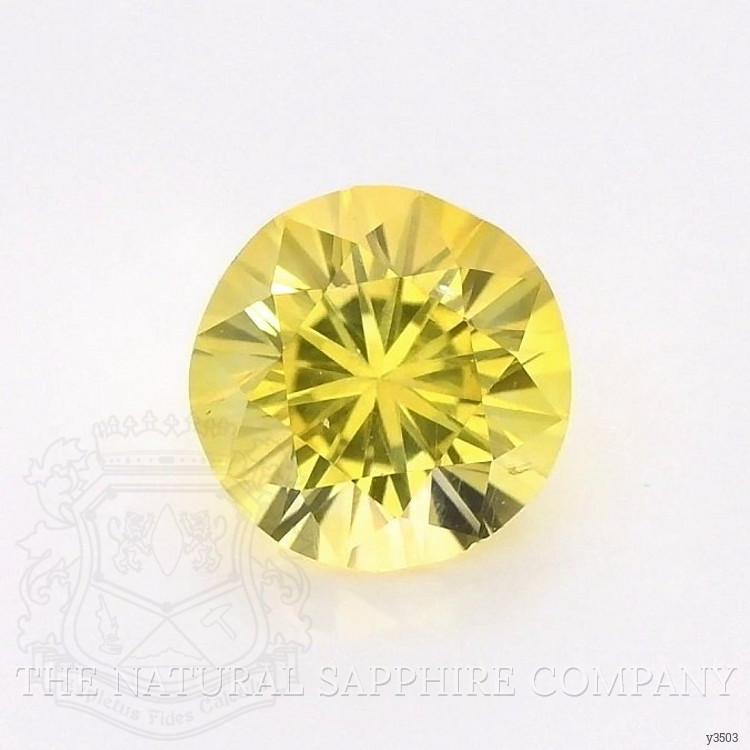The ring features a beautiful, transparent 0.75 carat round shape yellow sapphire with the dimensions of 5.50 x 5.41 x 3.65 mm and a brilliant cut. It has a clarity grade of very slightly included (evaluated at eye level), medium intense color saturation, and an excellent polish. The origin of this sapphire is Ceylon (Sri Lanka).