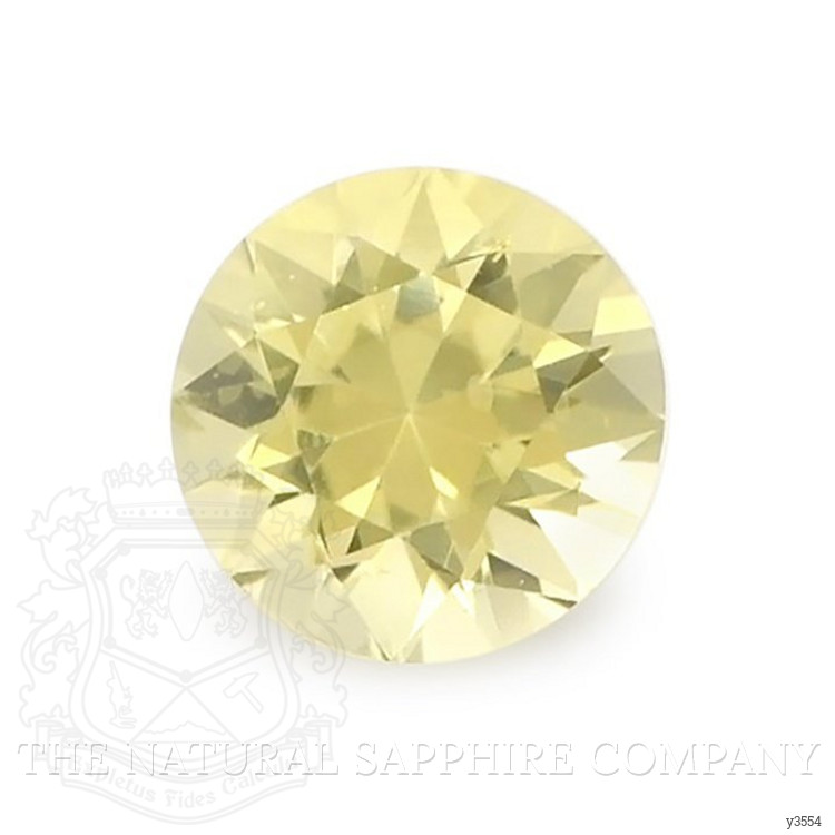 The ring features a beautiful, transparent 0.80 carat round shape yellow sapphire with the dimensions of 5.57 x 5.49 x 3.79 mm and a brilliant cut. It has a clarity grade of very slightly included (evaluated at eye level), medium intense color saturation, and an excellent polish. The origin of this sapphire is Ceylon (Sri Lanka).