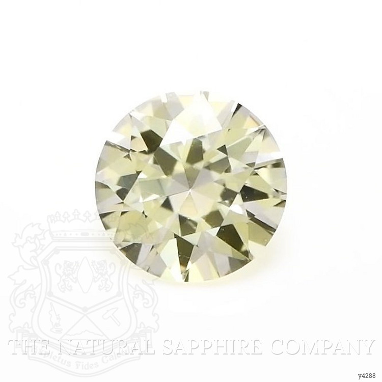 The ring features a beautiful, transparent 0.94 carat round shape yellow sapphire with the dimensions of 6.23 x 6.19 x 3.83 mm and a brilliant cut. It has a clarity grade of eye clean (evaluated at eye level), medium color saturation, and an excellent polish. The origin of this sapphire is Ceylon (Sri Lanka).