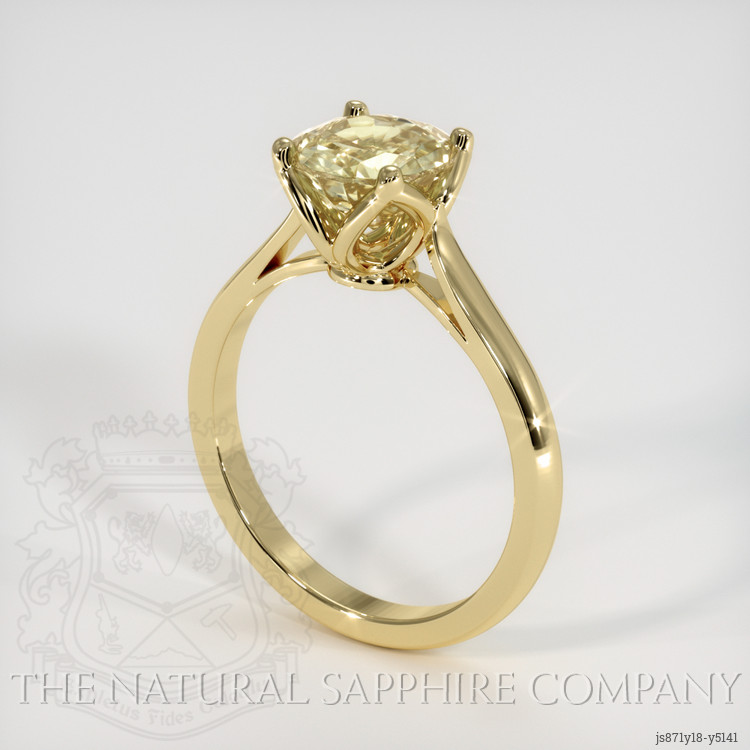 The ring features a beautiful, transparent Other certified Light Yellow 1.81 carat round shape yellow sapphire with the dimensions of 7.41 x 7.18 x 4.54 mm and a mixed brilliant cut. It has a clarity grade of very slightly included (evaluated at eye level), light color saturation, and an excellent polish. The origin of this sapphire is Ceylon (Sri Lanka).