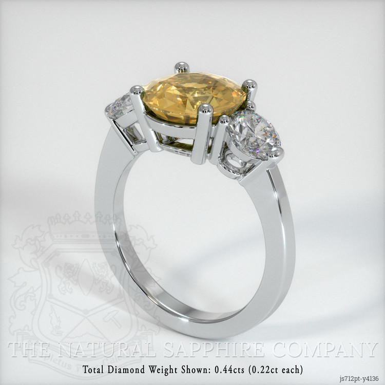 Three Stone Yellow Sapphire Ring 2.54 Ct., Platinum 950