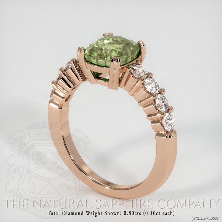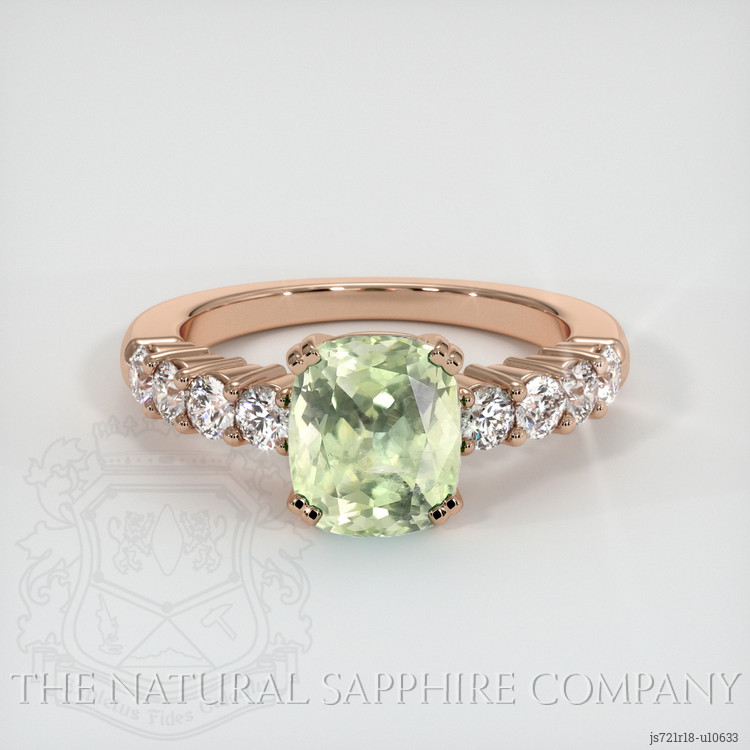 Accent Stones Yellowish Green Sapphire Ring 2.88 Ct., 18K Rose Gold