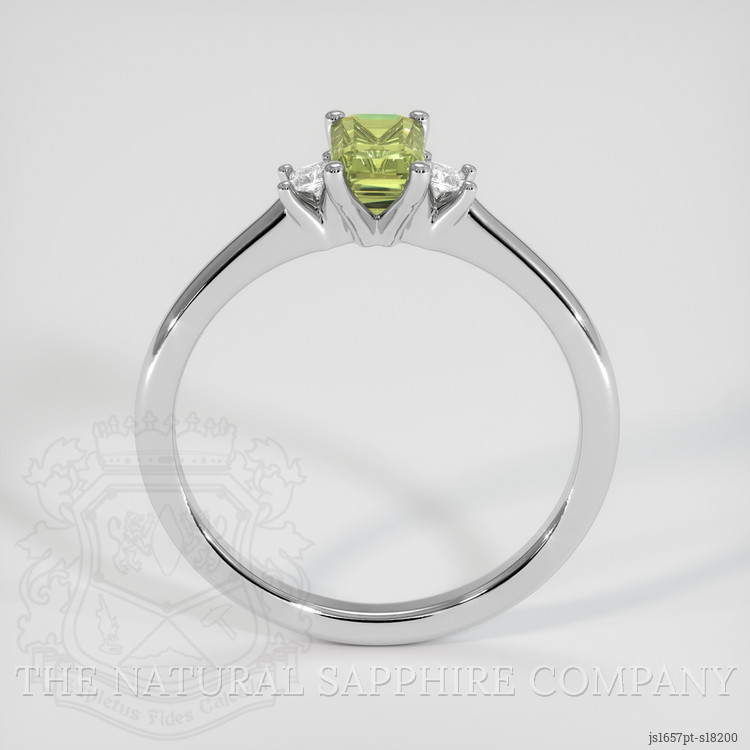 Three Stone Yellowish Green Sapphire Ring 0.82 Ct., Platinum 950