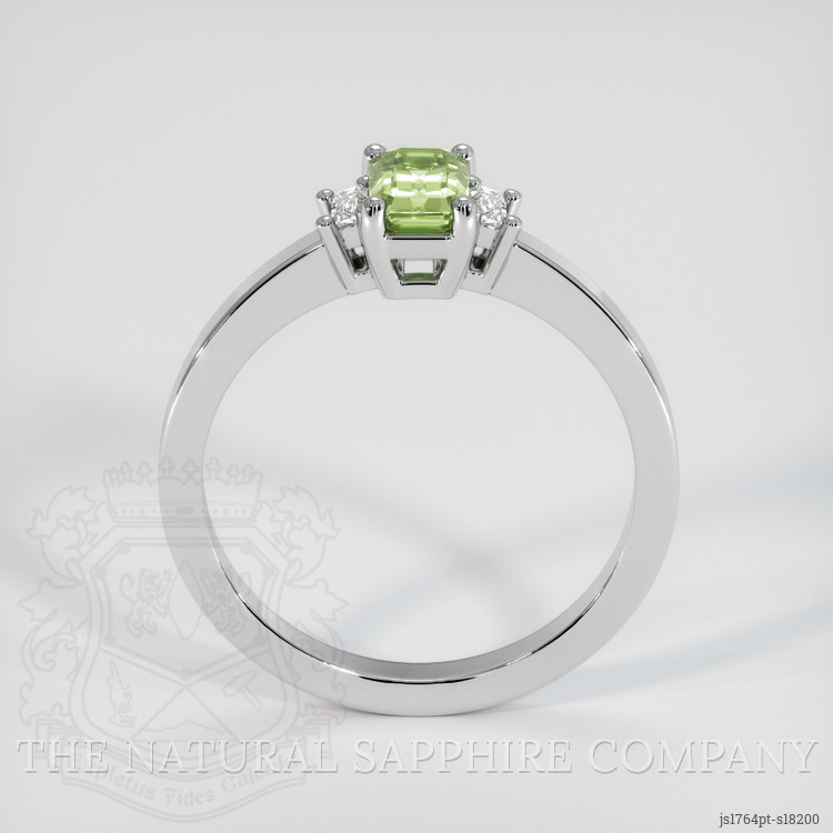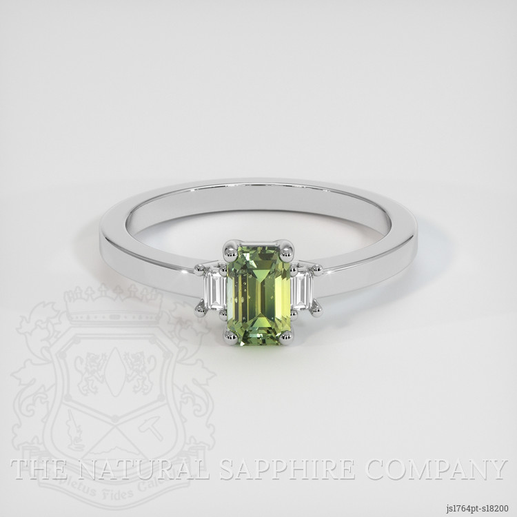 Three Stone Yellowish Green Sapphire Ring 0.82 Ct., Platinum 950