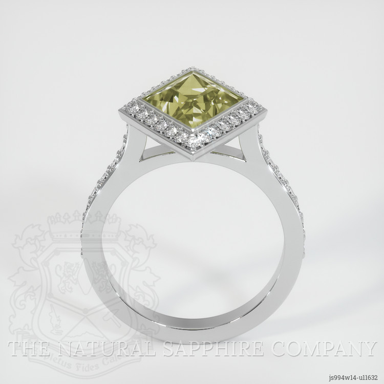 Pave Yellowish Green Sapphire Ring 3.20 Ct., 14K White Gold