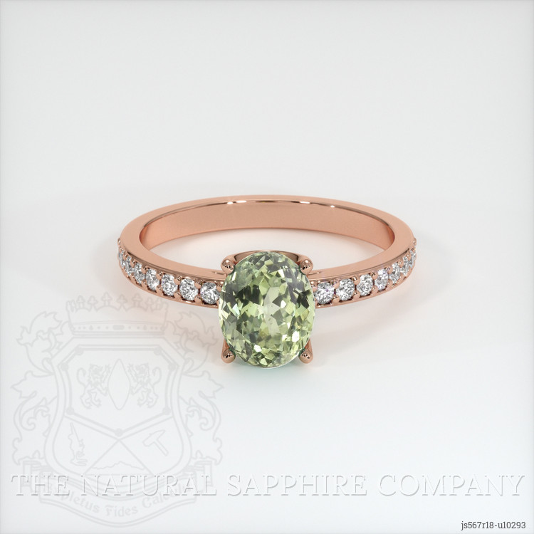 Pave Yellowish Green Sapphire Ring 1.70 Ct., 18K Rose Gold
