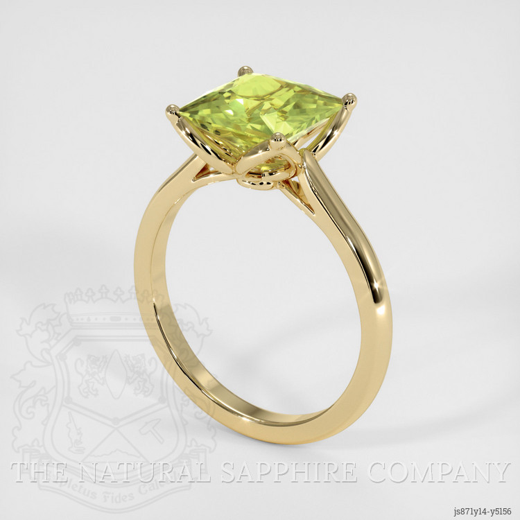 Introducing a masterpiece of elegance and craftsmanship from The Natural Sapphire Company, this exquisite ring showcases a captivating 3.21 carat princess shape yellowish green sapphire, distinguished by its remarkable dimensions of 8.28 x 8.28 x 4.88 mm. The sapphire, expertly cut into a princess shape, reflects our commitment to superior quality and luxurious appeal. With a clarity grade of very slightly included at eye level, paired with a rich medium color saturation, this sapphire radiates a unique hue that places it in a league of its own compared to ordinary gemstones on the market. Its origin from Ceylon, renowned for some of the world's finest sapphires, adds an exclusive touch of heritage and authenticity that enhances its appeal. Embedded in a refined 14K yellow gold setting, this ring is not just a piece of jewelry but a timeless symbol of commitment and love.
