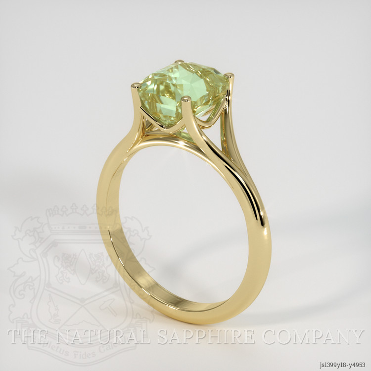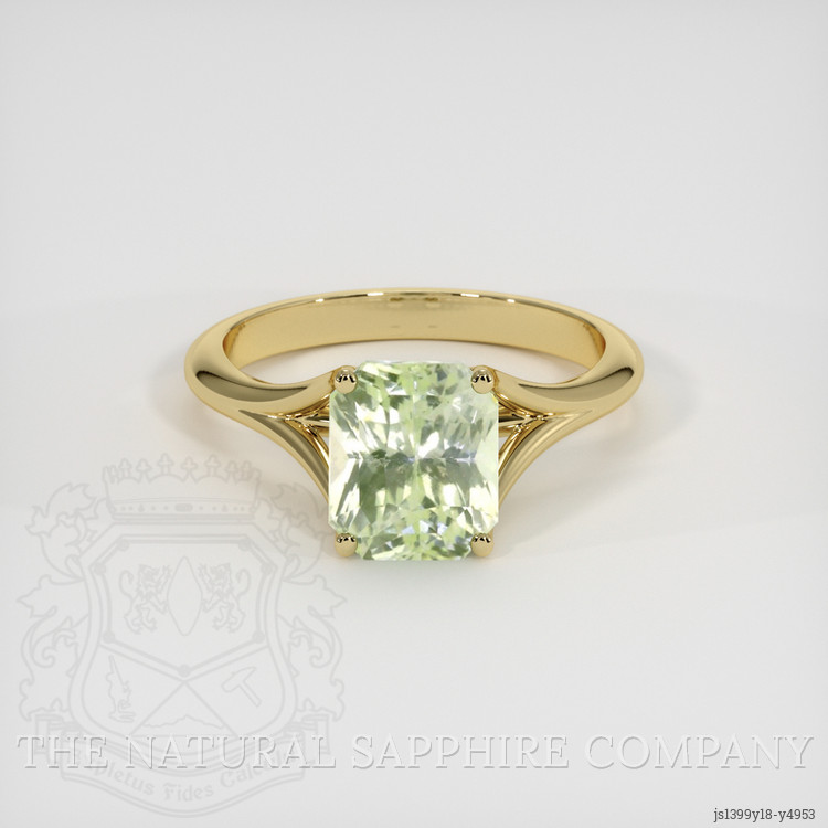 Solitaire Yellowish Green Sapphire Ring 3.16 Ct., 18K Yellow Gold