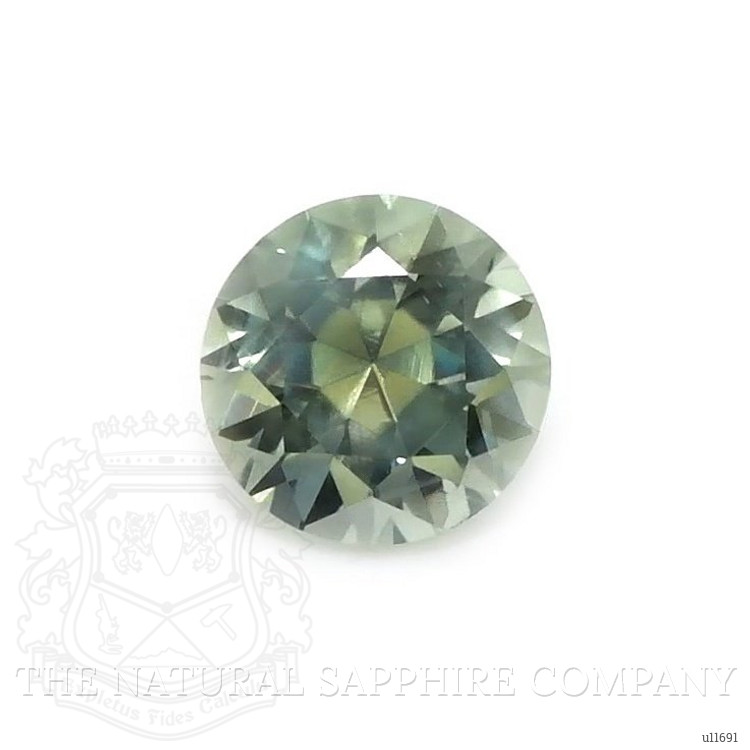 The men's ring features a beautiful, transparent 0.65 carat round shape yellowish green sapphire with the dimensions of 5.16 x 5.12 x 3.51 mm and a brilliant cut. It has a clarity grade of eye clean (evaluated at eye level), medium intense color saturation, and an excellent polish. The origin of this sapphire is Montana.