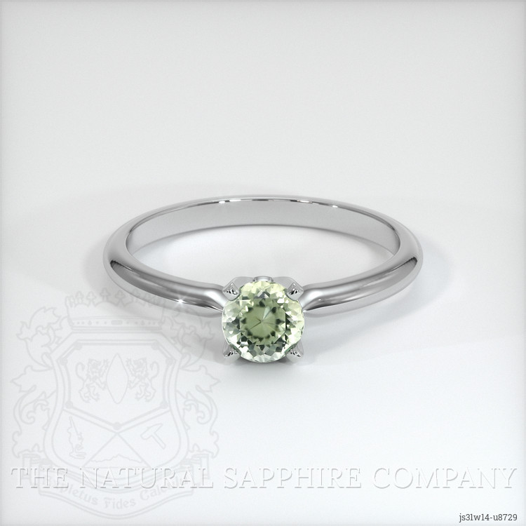 Solitaire Yellowish Green Sapphire Ring 0.69 Ct., 14K White Gold