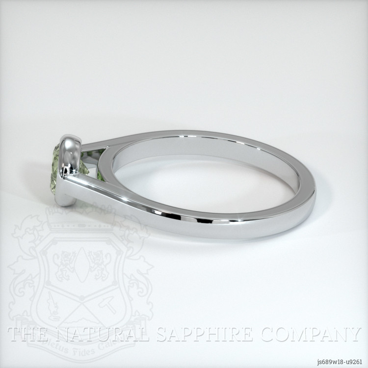 Bezel Yellowish Green Sapphire Ring 0.70 Ct., 18K White Gold