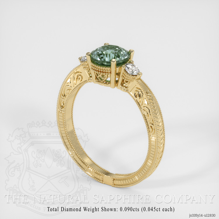 Antique Style Yellowish Green Sapphire Ring 0.90 Ct., 14K Yellow Gold