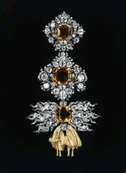 As with many mythical legends, depictions often find their way into representations of art and jewelry. The most common appearance of the Golden Fleece in jewelry shows a gold sheep fleece suspended in a setting, as though the fleece had collected gold particles from a stream and now been hung up to dry.