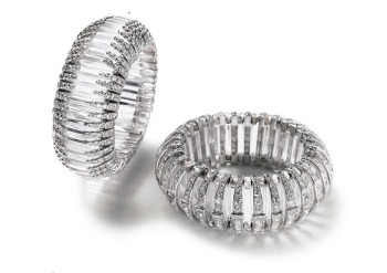 In the 1930s at the height of the Art Deco movement, Gloria purchased two extraordinary bracelets from Cartier. They were fashioned from several dozen semi-circles of rock crystal enhanced with diamonds and mounted on an elastic platinum framework.