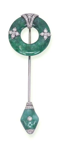 As a piece of jewelry, it was highly popular during the 20th century, particularly the Art Deco period when it became quite prominent as ornamentation on hats and handbags for women. The luxury jewelry design firm of Cartier also loved this look, becoming famed for its jeweled jabot pins produced in the 1920s and 1930s.