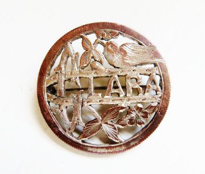 Also appearing in the Victorian period , the love brooch brought the wearing and styling of brooches to the masses. These brooches were carved from sheets of hammered silver and designed to be gifted as tokens of affection. Due to these brooches being lightweight and made of silver with only an overlay of gold (in some instances), these were accessible to just about all social classes as keepsakes that would feature lovebirds, hearts, and good tidings.