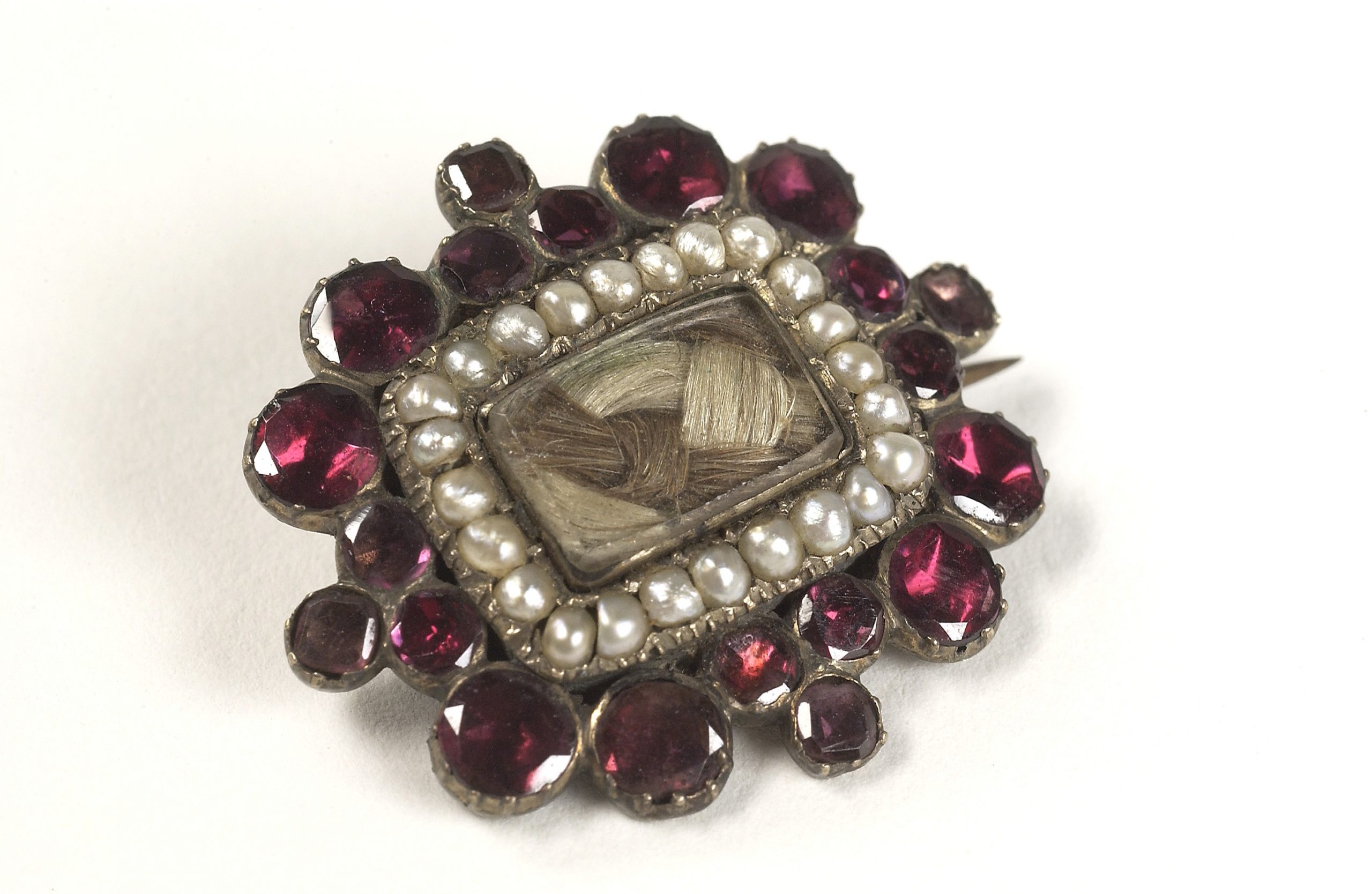 The mourning brooch was also heavily popularized by Queen Victoria whom mourned for twenty years the passing of her love, Prince Albert. This event brought into style the hair mourning brooch, which featured a strand or strands of the loved ones hair woven into a design and placed behind a plate of glass or enamel in the brooch.