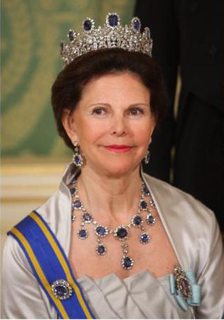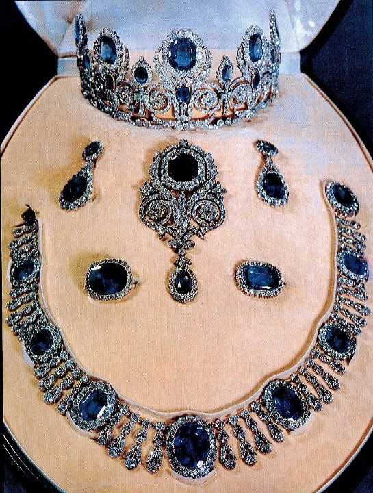 The creation of the Leuchtenberg Sapphire Parure is attributed to the official jeweler of Emperor Napoleon, Marie-Étienne Nitot. Created as a wedding gift for Princess Augusta of Bavaria, when she and Napoleon’s stepson, Eugène de Beauharnais, married in 1806. When Augusta’s eldest daughter Josephine married King Oscar I of Sweden and Norway, the set moved to Scandinavia where they have remained. Today, the parure is Queen Silvia of Sweden’s signature set of jewels and is often seen in official portraits and at ceremonies.