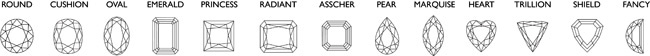 The chart below features common sapphire shapes. The most popular shapes for sapphires are round, cushion, emerald cut, radiant and princess. If you would like more information regarding the characteristics of each shape, please call us to speak with a gemologist who will be happy to help you select your sapphire .