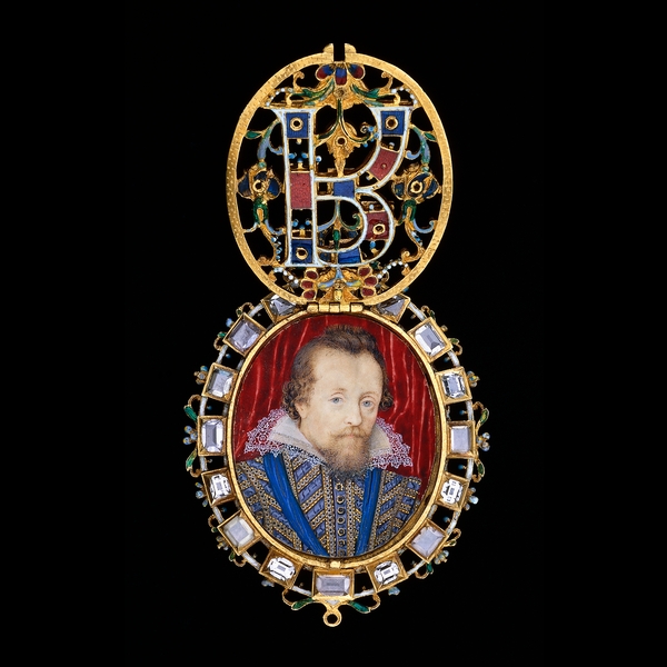 King James, son of Mary Stuart, Queen of Scotland, advanced to the throne of England in 1603. To stifle political intrigue surrounding his accession as the first Stuart monarch of England, he and his advisors saw an advantage in emphasizing his ancient lineage not only through the Tudor line, but also to the mythical founder and King of all the Britons. Lyte was commissioned to produce the genealogy. To show his appreciation, King James presented Lyte with an enameled gold locket containing the King’s portrait.