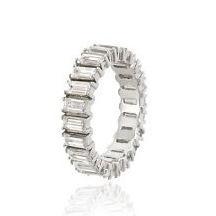 Queen of Hollywood, Marilyn Monroe received a platinum eternity band as an engagement ring from husband, Joe DiMaggio. The ring featured channel set baguette diamonds and later sold for $772,500 at auction.