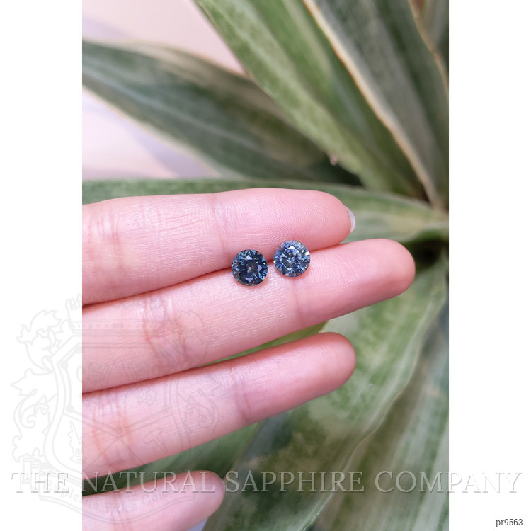 Our skilled artisans take these nestled treasures and work tirelessly to shape them perfectly. The sapphires, measuring 1.49 carats and 1.53 carats, are shaped into stunning round forms, with dimensions of 6.78 x 6.76 x 4.39 mm and 6.79 x 6.80 x 4.59 mm respectively. They are cut using a mixed brilliant approach, allowing the stones to blossom with brilliance, unhindered by imperfections. Despite having very slight inclusions when evaluated at eye level, their beauty shines unblemished to those who behold them. The excellent polish enhances their allure, making them ready to captivate and inspire.