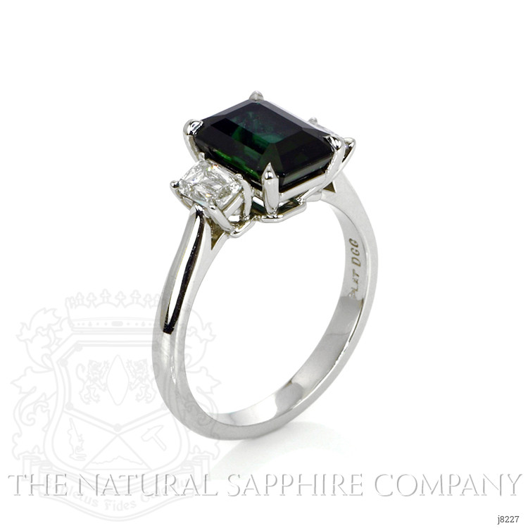 3.79 Ct. Green Sapphire and Natural Diamond Three Stone Ring, Platinum 950
