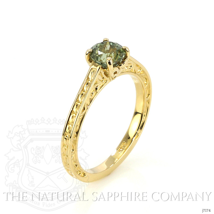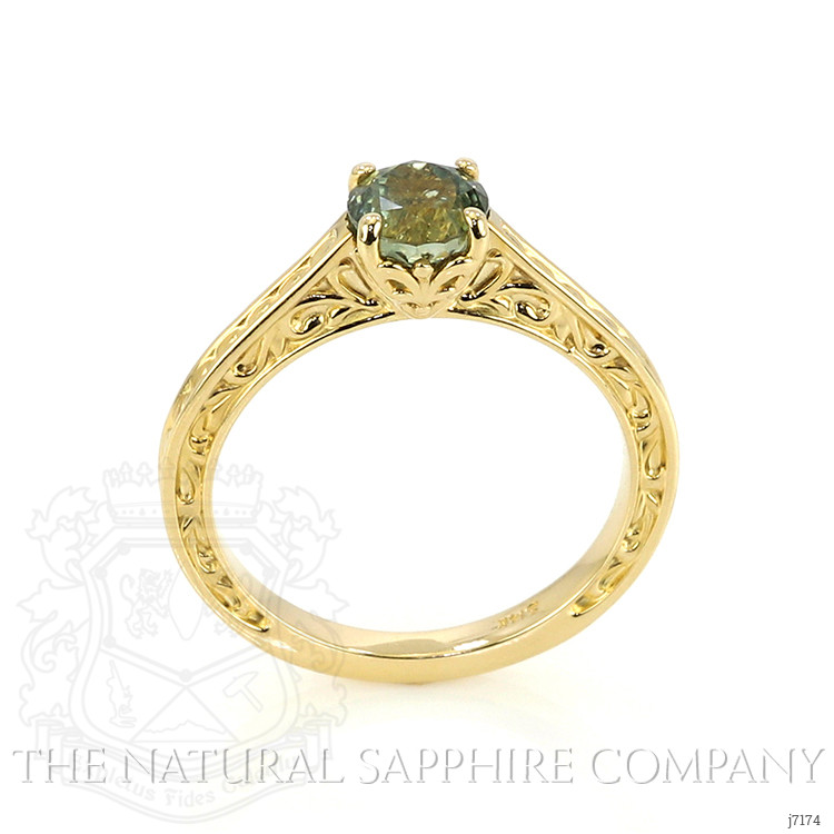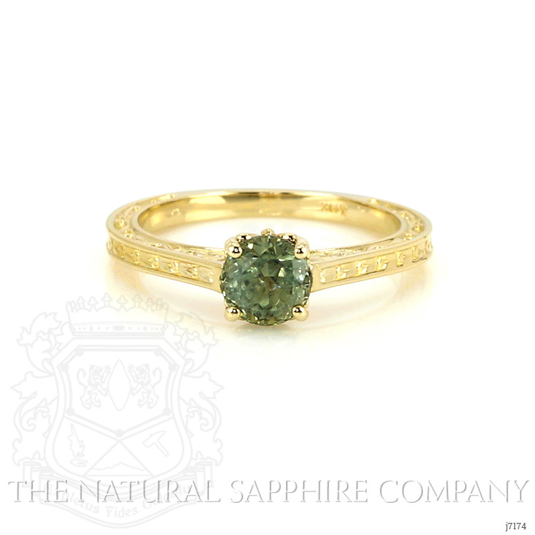 1.26 Ct. Green Sapphire Antique Style Ring, 14K Yellow Gold