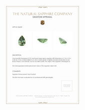 The origin of this precious gem, Madagascar, imparts a heritage of remarkable beauty and authenticity. Known for its breathtaking sapphires, this paradise of gemstones infuses unbridled love for nature's gifts into every facet of this exquisite jewel. Owning this green sapphire is an achievement beyond mere possession. It is an invitation to adorn oneself with a piece of paradise—an iterative reflection of nature's perfection. It is a commitment to a legacy of luxury that unfolds its natural beauty with every passing year, captivating the senses and elevating the status of its owner to one of exquisite sophistication. At The Natural Sapphire Company, we invite you to step into a realm where owning such a gem is more than acquiring a treasure. It is embracing a piece of art that forever captivates and defines elegance.