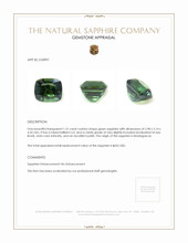 Elegantly crafted by The Natural Sapphire Company, this stone carries with it a tale of romance and devotion, epitomizing the eternal bond it symbolizes. The very slightly included clarity ensures that nothing distracts from its profound beauty, allowing it to shine with an undisturbed grace beneath both the gentle caress of starlit skies and the vibrant glow of daylight. This green sapphire is more than a mere gemstone; it embodies the emotive symphony of love's eternal dance. Each gaze upon it, whether within the limitless expanse of an azure sky or the intimate glow of evening possibilities, promises a journey that celebrates the love story it accompanies, a tribute to moments cherished forever.