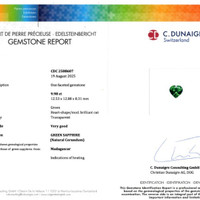 This masterpiece exhibits an intense color intensity that captures the very essence of verdant luxury. The radiant green shade is reminiscent of the lush landscapes of its origin in Madagascar. This sapphire features a mixed brilliant cut, offering not only unparalleled brilliance but a kaleidoscope of light that dances with grace. Such a treasure is destined to captivate and inspire. The intense luminosity of this sapphire reflects a unique character and prestige, ideal for those who seek distinction in their choice of adornment.