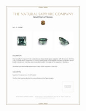 This sapphire, sourced responsibly from Montana, reflects The Natural Sapphire Company's commitment to quality and authenticity. The origin of such a gemstone not only adds to its narrative but also ensures a connection to a source recognized for producing gemstones that meet high standards of both clarity and color. Additionally, the sapphire's excellent polish highlights its inherent luster and luminosity. When considered in totality, the princess-shaped bluish-green sapphire encapsulates the craftsmanship and dedication to quality that The Natural Sapphire Company embodies. This gemstone is an exemplar of nature's artistry combined with human expertise, offering a truly remarkable addition to any collection.