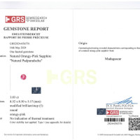 In the ethereal embrace of twilight, where dreams bloom in gentle hues, there lies a treasure waiting to be discovered. Behold a jewel that captures the whispered secrets of dawn and dusk, a swirling symphony of orange and pink, a 3.03 carat round padparadscha sapphire. This masterpiece, certified by GRS, stands as a testament to nature's unparalleled artistry, an opulent creation that beckons the beholder into a reverie of romance and wonder. Its dimensions, carefully crafted at 8.53 by 8.48 by 5.19 mm, reveal a finely tuned balance of brilliance and finesse, an ode to the sublime precision that resides within each delicate facet.