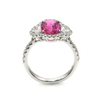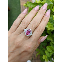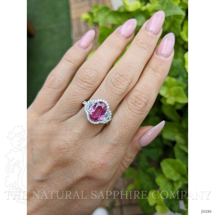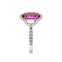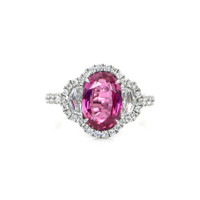 Shopping for the perfect ring can be a daunting task for individuals facing common issues such as budget constraints, finding the ideal style, or making an ethical choice, leading to stress and uncertainty. The search often ends in frustration, with worries about quality, ethical sourcing, and the design matching personal taste. Fortunately, this exquisite ring addresses and resolves these challenges.Firstly, budget constraints can make the search for a luxurious piece seem impossible. However, this ring offers exceptional value for its features. The primary stone is a stunning, transparent Vivid Pink 3.33 carat oval shape pink Sapphire from Madagascar. With dimensions of 10.58 x 7.36 x 4.14 mm and a mixed brilliant cut, it showcases excellent polish and intense color intensity. Evaluated as very slightly included at eye level, the Sapphire guarantees clarity and brilliance comparable to that of higher-priced pieces, providing a luxurious look within an attainable budget.Finding the right style is another common hurdle. This ring is designed to suit a wide array of personal tastes. Its primary pink Sapphire is beautifully complemented by 2 white half moon shaped mixed brilliant cut Diamonds weighing a total of 0.38 carats, and 42 white round shaped mixed brilliant cut Diamonds weighing a total of 0.50 carats. With a clarity grade of vs1 – Very Slightly Included, these diamonds add exceptional sparkle and sophistication. The 18K white gold setting adds timeless elegance, ensuring the design is both modern and enduringly classic. This meticulous attention to detail ensures the ring stands out as a statement piece, yet remains versatile enough to fit various styles and preferences.Ethical concerns often weigh heavily on the minds of conscientious shoppers. This ring's center stone originates from Madagascar, a country known for responsibly sourcing gemstones. By choosing this ring, customers can feel confident in their ethical choice. The craftsmanship ensures that each gemstone is carefully selected and ethically sourced, mitigating ethical dilemmas associated with luxury purchases.In essence, this ring addresses and solves common shopping dilemmas with its exceptional attributes. From fitting a tight budget without compromising on luxury, catering to diverse styling preferences, to making an ethical choice, this ring promises a satisfying end to the exhaustive search for the perfect piece. Its masterful craftsmanship, combined with the captivating pink Sapphire and dazzling diamonds, make it the ideal choice for discerning individuals seeking beauty, quality, and ethical responsibility.