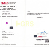 Millions of years ago, beneath the ancient landscapes of Madagascar, a remarkable natural process began in the heart of the earth. The GRS certified 2.28 carat purplish pink sapphire was slowly taking form. Deep underground where temperatures soar and pressures mount, elements such as aluminum and oxygen combined in perfect measure. During this remarkable geological episode, trace amounts of other elements subtly influenced the stone's color to produce a rare purplish pink hue. This time-intensive natural phenomenon, spanning countless millennia, resulted in the crystalline formation you now behold. The sapphire, having undergone the tumultuous yet precise processes of nature, emerged in its pristine state. Vestiges of this creation story are still evident in the stone's clarity and vibrancy, a testament to the geological conditions that shaped it.