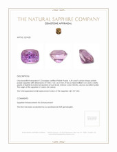 Naturally sourced from Ceylon, Sri Lanka, the origin of this sapphire is synonymous with gemstone excellence. Ceylon sapphires have long been revered for their rich color and clarity, attributes well-represented in this pinkish purple treasure. Notably, the gemstone has undergone no enhancement, preserving its natural purity and integrity. This untouched state allows you to appreciate the sapphire precisely as nature created it. The enduring qualities of this sapphire ensure that its allure will gracefully endure the passage of years, making it not only a joy to own but also a worthy heirloom for future generations.