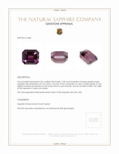 Each angle of the emerald cut enhances its beauty, highlighting the exquisite fusion of pink and purple hues. As if capturing the last light of day momentarily pausing before dusk, the gem holds within it whispers of twilight skies and the soft lilac embrace of dawn. Unlike common gemstones, which may merely shimmer superficially, our sapphire captivates with its profound sense of depth. The very slightly included clarity grade is a gentle reminder of nature's artistic touch, promising its beholder a one-of-a-kind gem that is as unique as a fingerprint.