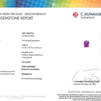 In the realm of dreams and whispers of legends, where the hues of twilight dance upon the horizon, emerges a gemstone of unparalleled allure—a purplish pink sapphire that captures the heart’s deepest desires. Presented by The Natural Sapphire Company, this exquisite 7.02-carat sapphire exhibits a vivid color intensity that rivals the most breathtaking sunsets, a true masterpiece born in the enchanted lands of Madagascar. Its cushion shape, elegantly spanning dimensions of 13.04 x 10.82 x 5.49 mm, holds the promise of eternal love within its refined brilliance.