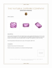 The purple sapphire's radiant cut enhances its inherent beauty, allowing the facets to capture light with unparalleled brilliance. Each angle and edge is a testament to precision, bringing forth a gem with medium color intensity that stands as a symbol of refined elegance. The clarity grade, very slightly included, as evaluated at eye level, ensures that any inclusions are minimal, preserving the gemstone's clarity while adding unique character. The excellent polish further amplifies these attributes by offering a luster that is as smooth as it is captivating, underlining the care involved in every step of its creation.