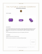 Once discovered, these precious stones are carefully extracted with the utmost respect for their fragile beauty. It is a process steeped in tradition as miners work with skilled precision, guided by generations of knowledge passed down through the ages. Following its removal from the earth, our purple sapphire makes a critical transition from raw potential to polished brilliance. At The Natural Sapphire Company, we embrace the responsibility of enhancing rather than altering nature's masterpiece. This gemstone is cut with meticulous precision into an emerald shape, a design known for its elegance and sophistication, highlighting the slab-like facets that amplify its inherent glow. Despite having a slightly included clarity grade, it exhibits an inner harmony wherein each inclusion, though minor and visible only upon close inspection, tells a story of its life within the earth's depths.