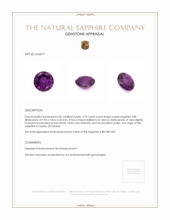The vivid color intensity of this purple sapphire is an attribute that significantly contributes to its allure and value. With an intense hue that is rich and consistent across the gem, the sapphire presents a captivating depth of color that is both vibrant and enchanting. The mixed brilliant cut plays a pivotal role in highlighting this vivid intensity, as the carefully structured facets catch the light and reflect it across the stone’s surface. This dance of illumination accentuates its already mesmerizing purple hue and contributes to the gem's overall visual vivacity. The color, intensified by this proficient cut, results in a gemstone that is both breathtakingly beautiful and uniquely individual, offering the wearer a piece that undeniably stands out.