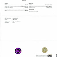 The featured gemstone is a GIA-certified round shape purple sapphire, weighing an impressive 4.75 carats. With dimensions of 9.94 x 9.83 x 5.60 mm, this exquisite gem showcases a mixed brilliant cut. This particular cut is a masterful convergence of tradition and innovation, enhancing the inherent properties of the sapphire. By employing facets strategically arranged to maximize the interplay of light, the mixed brilliant cut allows the sapphire's vivid color intensity to radiate dramatically. This is a design crafted to unlock and elevate the stone's natural brilliance, creating a dazzling spectacle that captivates the eye and highlights the gem’s vibrant optical characteristics.