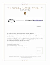 The following stones comprise the lovely bracelet and are entirely set in 18K white gold. The bracelet primarily features with 18 blue oval shaped mixed brilliant cut sapphires, weighing a total of 15.14 carats. The sapphires have a clarity grade of eye clean, and color saturation of vivid. The origin of these sapphires is Ceylon (Sri Lanka). Also featured in the bracelet are 72 white round shaped mixed brilliant cut natural diamonds, weighing a total of 4.60 carats. The natural diamonds have a clarity grade of vs1 - Very Slightly Included., F color