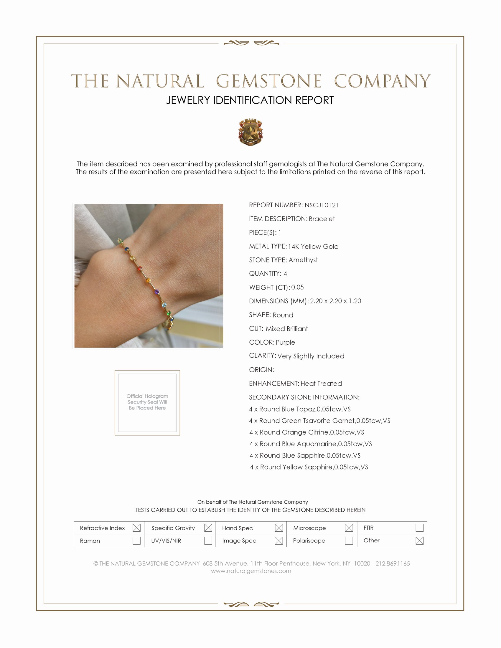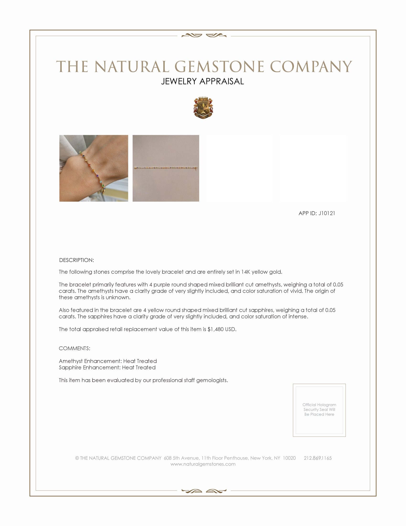 0.05 Ct.Tw. Purple Amethyst, Blue Topaz, Green Tsavorite Garnet, Orange Citrine, Blue Aquamarine and Mixed Sapphire Tennis/Line Bracelet, 14K Yellow Gold