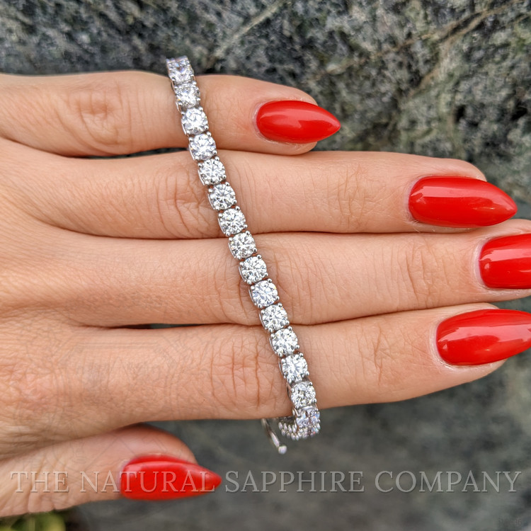 The allure of this beautiful bracelet lies in its timeless elegance and exquisite craftsmanship. Fashioned from 14K white gold, each stone, sparkling with an inner radiance, is meticulously set to create a seamless cascade of light and beauty. The bracelet captures the essence of sophisticated grace, echoing the grandeur of classic jewelry design. It has an enduring appeal, reminiscent of an era where craftsmanship was revered and beauty was found in simplicity and refinement.Drawing inspiration from the past, the bracelet embraces a minimalist yet opulent style, the white gold setting providing a lustrous backdrop for the stones, enhancing their natural brilliance. The symmetry and precision of each stone capture and reflect light in exquisite harmony, creating a fluid line that dances with every movement. This piece is not merely an accessory but a celebration of legacy and artisanship, belonging to those who understand and appreciate the continuity of timeless designs.With its rich heritage, the bracelet seeks to connect the wearer to a lineage of elegance and tradition. It stands as a testament to the enduring beauty of classic jewelry, appealing to those who find comfort in the past and inspiration in history. This bracelet transcends mere fashion, offering an eternal elegance that resonates with those who hold beauty and history close to their hearts. A perfect embodiment of tradition, this lovely creation is destined to be cherished for generations to come.