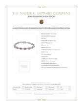 The following stones comprise the lovely bracelet and are entirely set in 18K white gold. The bracelet primarily features with 15 pink oval shaped mixed brilliant cut sapphires, weighing a total of 6.15 carats. The sapphires have a clarity grade of very slightly included, and color saturation of medium intense. The origin of these sapphires is Ceylon (Sri Lanka). Also featured in the bracelet are 345 white round shaped mixed brilliant cut natural diamonds, weighing a total of 1.77 carats. The natural diamonds have a clarity grade of vs1 - Very Slightly Included., F color