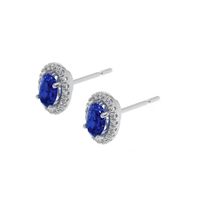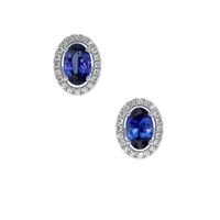 1.00 Ct.Tw. Blue Sapphire and Natural Diamond Pave Earrings, 14K White Gold