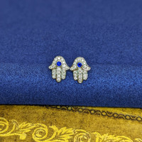 0.10 Ct.Tw. Blue Sapphire and Natural Diamond Religious Earrings, 18K White Gold