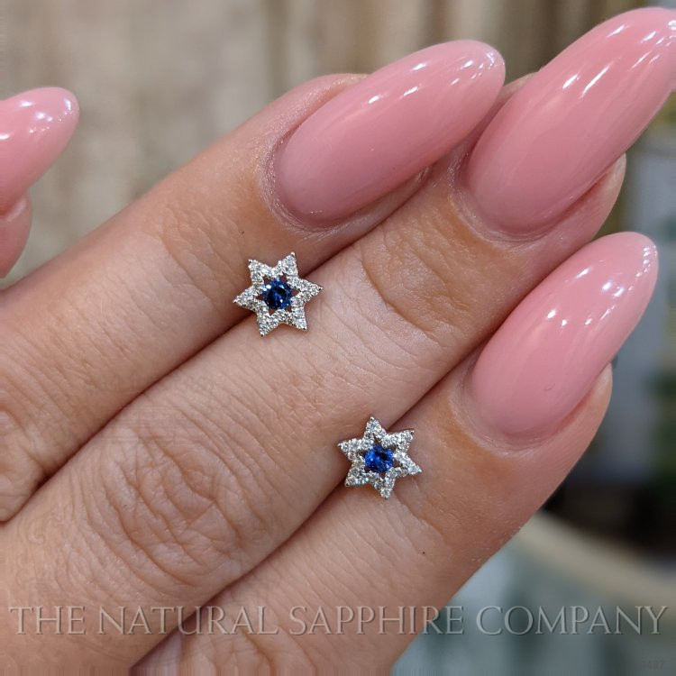 Central to this pair are two round-shaped blue sapphires, collectively weighing 0.13Ct. These gems, measuring a delicate 2.00 x 2.00 x 1.80 mm, radiate a vivid blue hue that speaks of deep oceans and clear skies. With their brilliant cut, they capture the essence of light, while their eye clean clarity exudes purity and clarity. Sourced from Ceylon (Sri Lanka), a region revered for its premium stones, these sapphires bring with them a legacy of luxury.